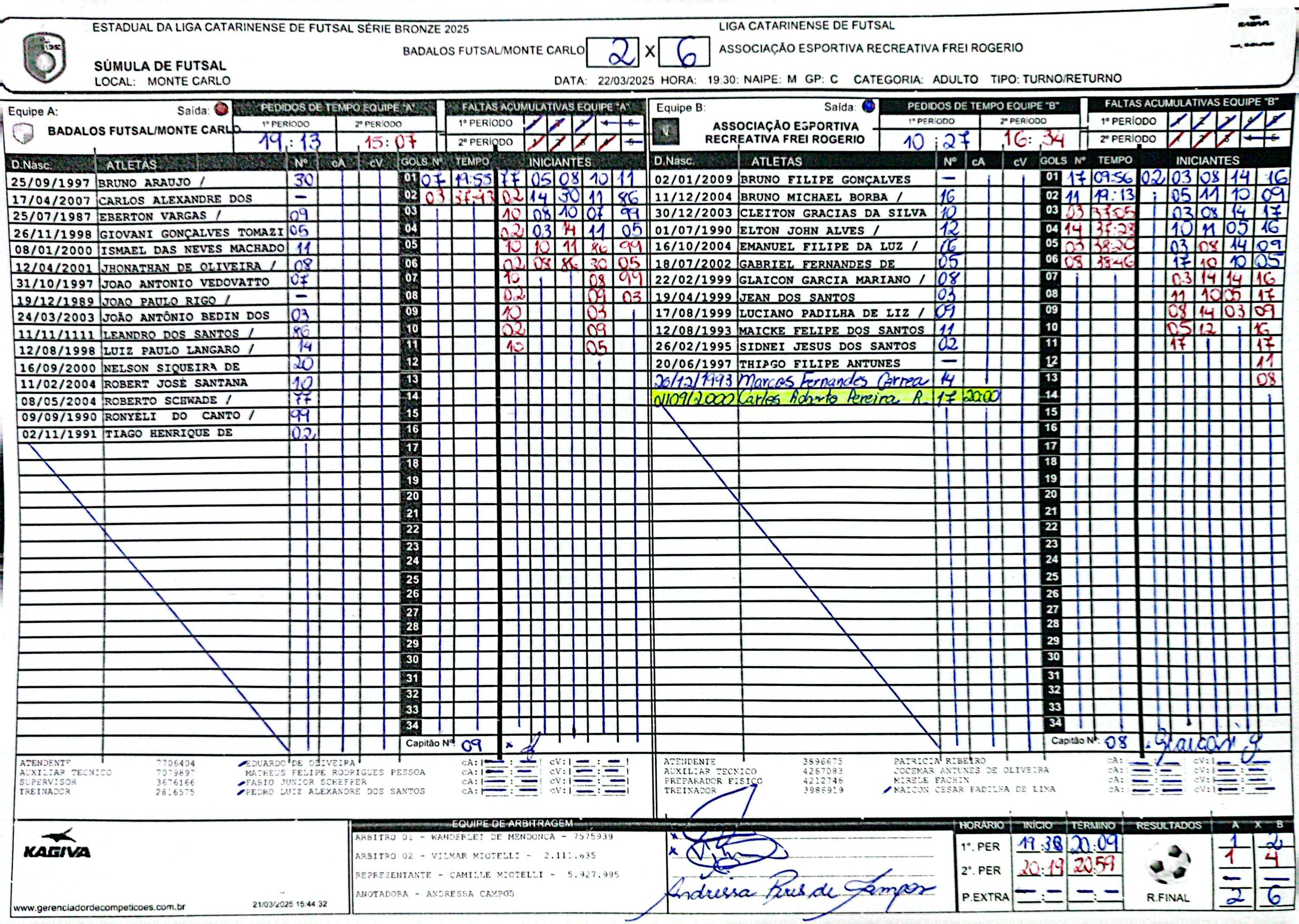 Badalos Futsal Monte Carlo 2 x 6 Associação Esportiva Recreativa Frei Rogério