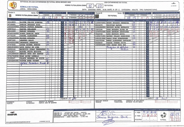 Nobre Futsal/Dona Emma 10 x 7 Td7 Futsal