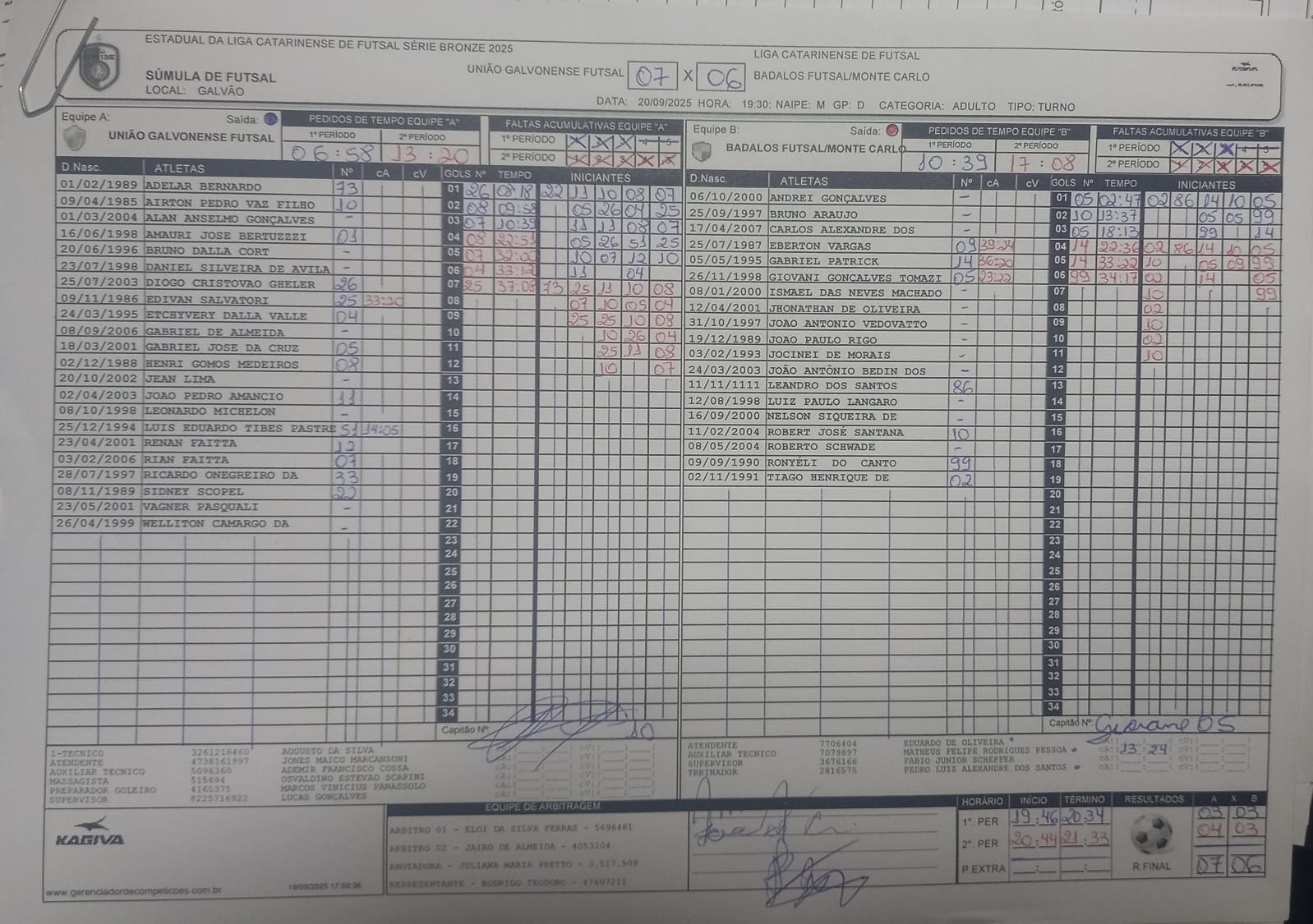 União Galvonense Futsal 7 x 6 Badalos Futsal Monte Carlo
